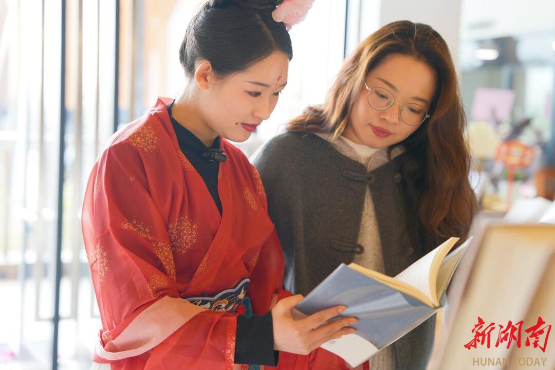 大学生志愿者进行“NPC角色”演绎,开展沉浸式游玩打卡互动。大学生龚婷穿着汉服,在清溪文创店为游客讲解:我是益阳人,对清溪村很了解,会介绍更多的同学来玩。